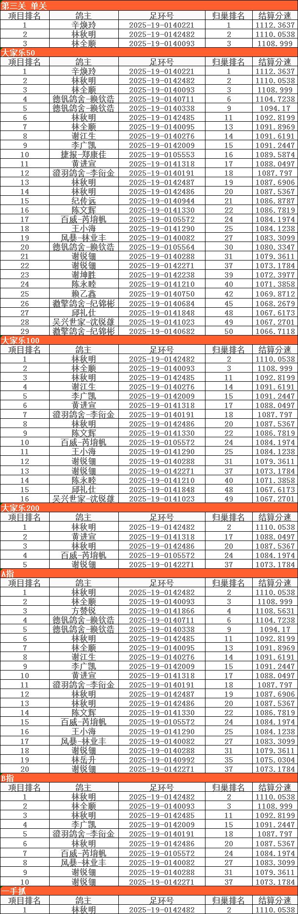 汕頭市信鴿協(xié)會(huì)2025年秋季四關(guān)第三關(guān)(南豐)成績