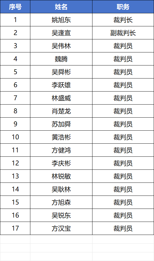 以下為資格站裁判人員名單: