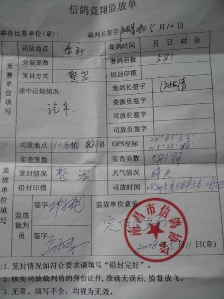 - 2008-05-08 長盛信鴿協(xié)會2008春五百公里比賽通知