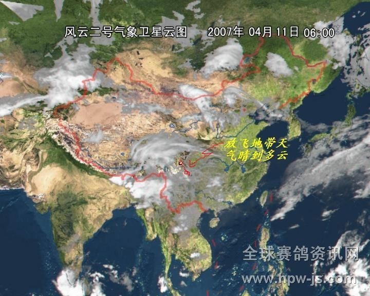 衛(wèi)星云圖顯示放飛地帶天氣為晴到多云