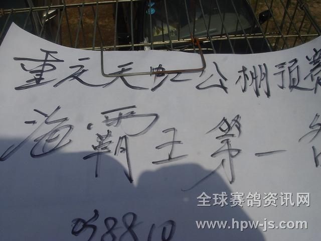 當(dāng)重慶天虹公棚月季花盛開的時(shí)候,在5月的長(zhǎng)假期間,到處洋溢著夏日熱情和節(jié)日的氣息,當(dāng)耕耘為播種而忙碌的時(shí)候,當(dāng)播種為收獲而憧憬的時(shí)候,當(dāng)收獲為豐收而賀彩的時(shí)候,迎來(lái)了重慶天虹公棚二屆春季公棚萬(wàn)源大獎(jiǎng)?lì)A(yù)賽,預(yù)賽在今日(5月6日)早晨06:30四川萬(wàn)源放出。6日早晨重慶鴿友早早來(lái)到天虹公棚,觀摩精彩瞬間奇跡發(fā)生,到了,山城鴿友在驚呼,海霸王!海霸王!9時(shí)58分,顯示屏上;2006-11-038810。海霸王獲得預(yù)賽冠軍,又有了海霸王5名;又有了海霸王9名………。真是海霸王綻放萬(wàn)源花。
