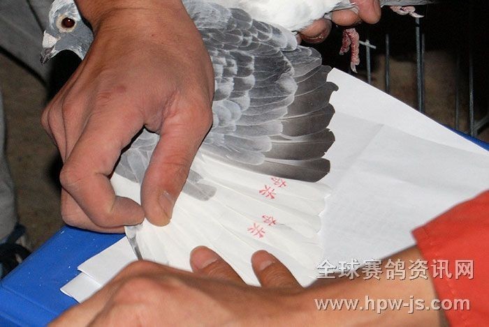 參賽鴿友看自己的參賽鴿,但是不能上自己的手