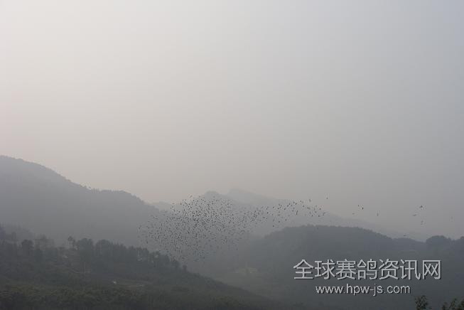 。ń袢諈f(xié)會(huì)快迅)重慶墊江縣信鴿協(xié)會(huì),2009年春訓(xùn)梁平縣515站。3月21日早上7~8時(shí)30分集鴿。21日11時(shí)放出。梁平縣515站這一關(guān)過山,是檢驗(yàn)重慶墊江鴿友賽鴿的第一道“鬼門關(guān)”,這里崇山峻嶺,大啞口海拔高度在1100米左右。由于天氣晴好,但是有霾,能見度極差,對(duì)賽鴿飛翔有一定影響。但是從今天司放現(xiàn)場(chǎng)看,賽鴿走勢(shì)很好,歸巢速度快,輕松過了第一道“鬼門關(guān)”。