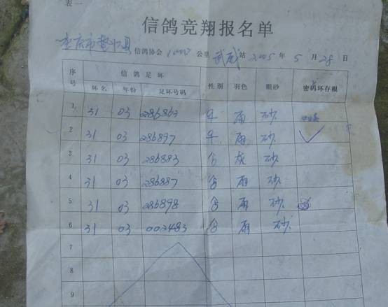 眾所周知,信鴿以出類拔萃的辨別方向能力著稱,無(wú)論飛多遠(yuǎn)都能找到回家的路。金秋10月,供電公司小盧抄電費(fèi)忙碌一天下班后回家,吃罷晚飯到鴿舍看一看,哈哈,怎么有一羽是曾面熟,又不太熟的一只雨點(diǎn)在鴿舍邊緣,瞧一瞧足環(huán),怎么好象是自己的,查一查,。!2003-31-286897,砂眼,淺雨,雌。哦;原來(lái)是自己2005年5月28日從甘肅武威放出的賽鴿,距我地1000空距。2006年10月11日才歸巢,一羽遲到的超期歸巢鴿,并且還算獲得1000公里“冠軍”。