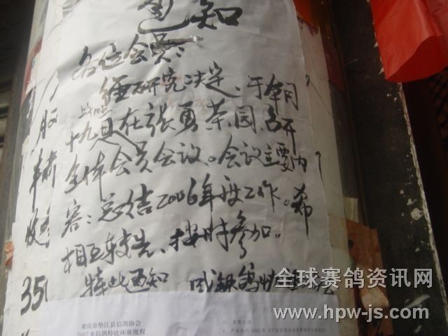 2006年11月19日上午10時,重慶市墊江縣,在冬日溫暖陽光的照耀下,鴿友心情特別舒暢. 成都鐵路局火車頭信鴿協(xié)會墊江分會一年一度的工作總結(jié)大會在墊江縣桂溪鎮(zhèn)綠樹成陰,環(huán)境幽雅的陵園路茶園召開了,有許多鴿友早早來到會場.