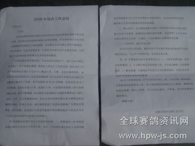 現(xiàn)場;成都鐵路局火車頭信鴿協(xié)會墊江分會2006年度總結(jié)會