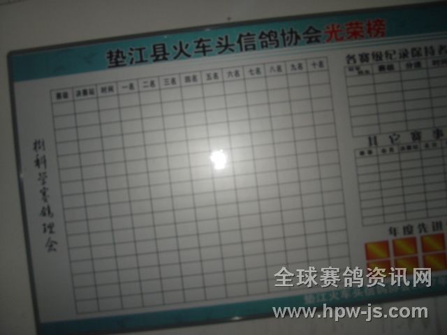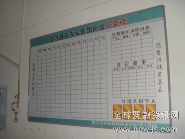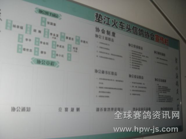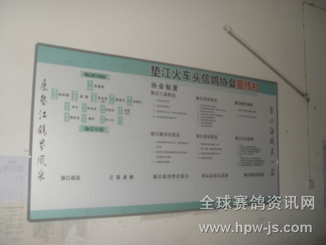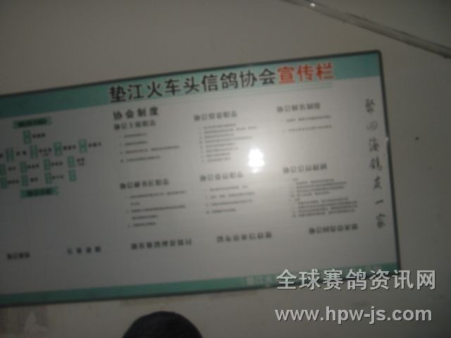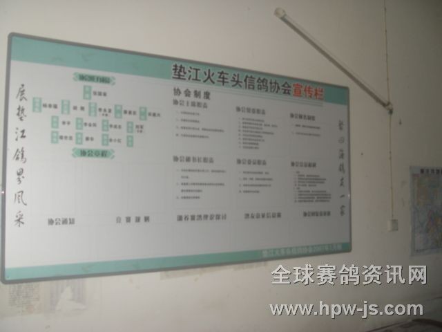 成都鐵路局火車頭信鴿協(xié)會(huì)墊江分會(huì),12月28日以新面貌迎新年。設(shè)鴿會(huì)展板兩塊懸掛在協(xié)會(huì)鴿友茶園內(nèi),主要展示新的一年中各類賽事,賽績,收支,光榮榜等。充分體現(xiàn)協(xié)會(huì)工作的公開﹐公平,公正原則`.